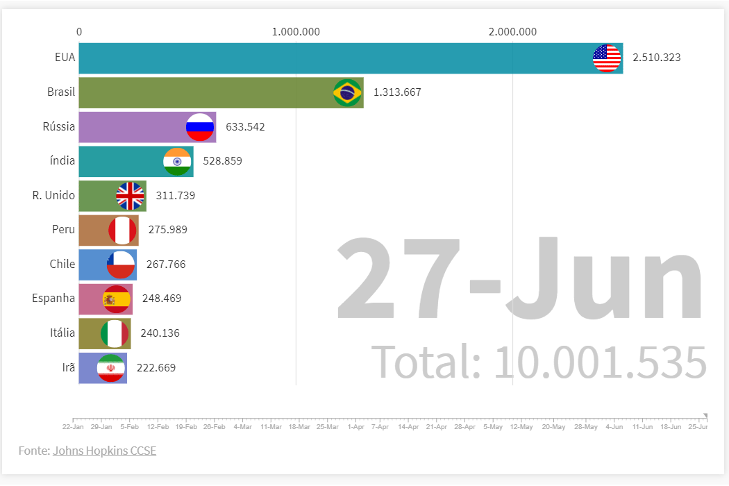Estes gráficos animados mostram a expansão do coronavírus em cada país